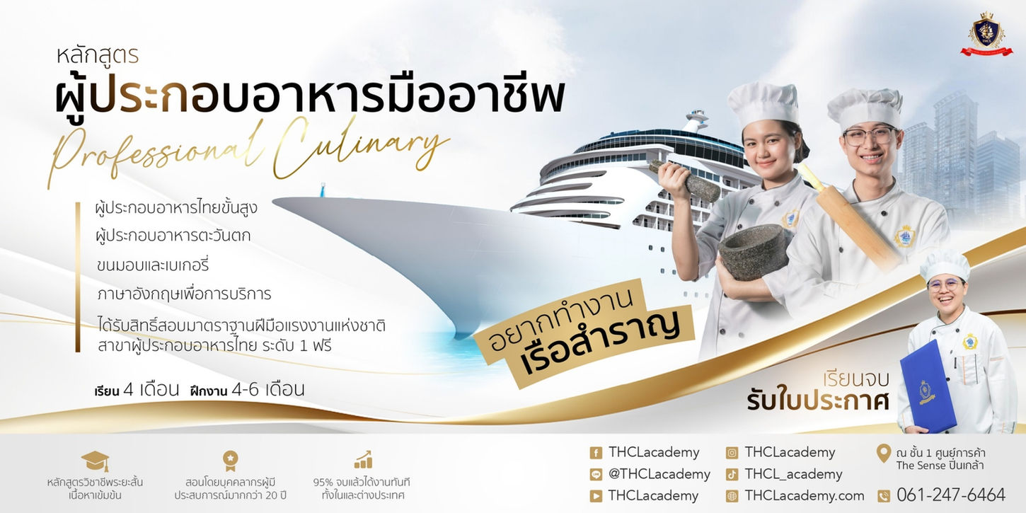 สอนทำอาหารไทย - อาหารตะวันตก งานบริการห้องอาหาร โรงแรม เรือสำราญ